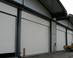 I portoni sezionali industriali rappresentano una soluzione molto diffusa per le aziende. Questo genere di chiusure si aprono verticalmente scorrendo verso l’alto, lasciando spazio libero davanti e dietro il portone, i pannelli del portone scivolano lungo il soffitto, si posizionano verticalmente sopra l’apertura o seguono la linea del tetto.
