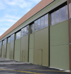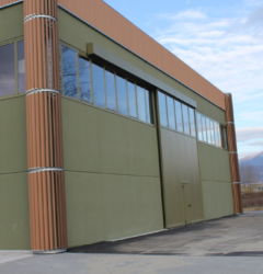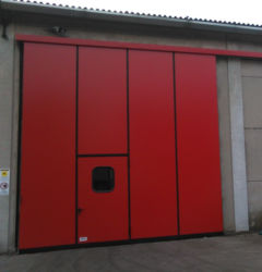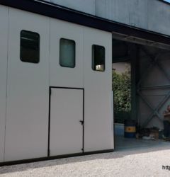 I portoni scorrevoli industriali possono essere personalizzati con diversi colori, sistemi di aerazione, oblò e porta pedonale.